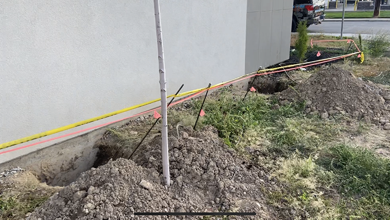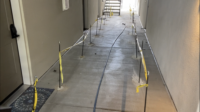We worked closely with the city as well as a local geotechnical engineer; who helped us design a plan that would increase the load bearing capacity of the soil and reduce the risk of settlement and the resulting property damage to the structure. The plan consisted of direct injection of a two-part structural foam into the soil under the footings. We drilled holes through the existing sidewalks and breezeways in order to install injection rods at predetermined depths and angles, this allowed us to inject the soils below the structure’s footings where the soil improvements were needed. The local engineer pretested and post tested with a plate bearing test. He also post tested with an AMS Dynamic Cone Penetrometer. The results were above satisfactory. The impact on those who lived in the complex was minimal. We completed the project in two days and only during business hours. None of the preexisting concrete needed to be removed and the existing landscape was minimally impacted.